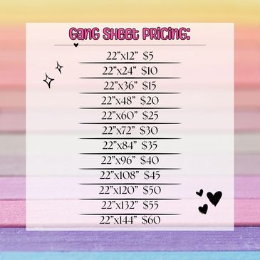 We now offer gang sheets :) pricing pictured.